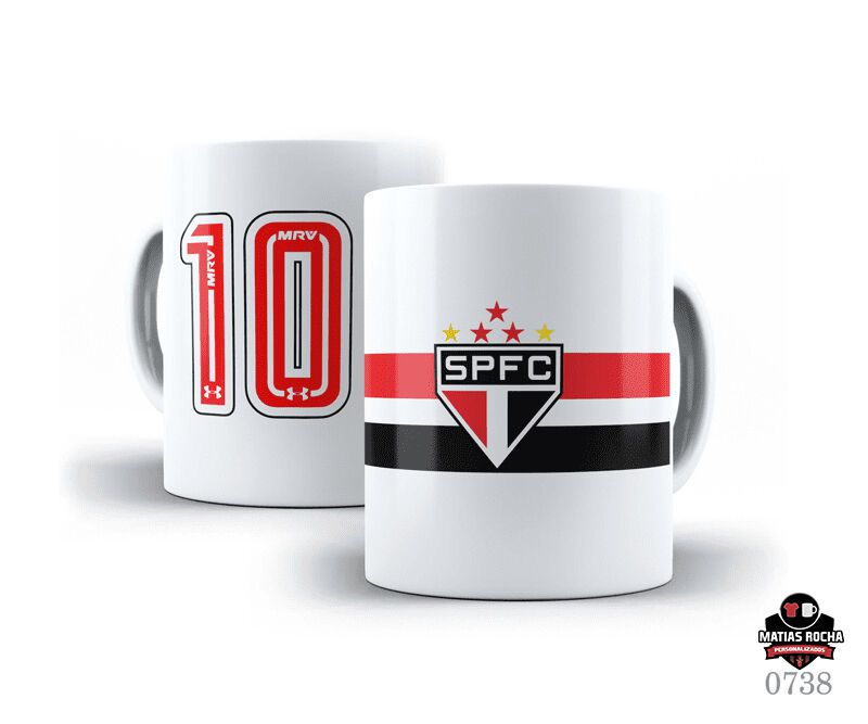 Caneca de porcelana 320ml, alta qualidade, estampado em sublimação. Tema Camisa São Paulo