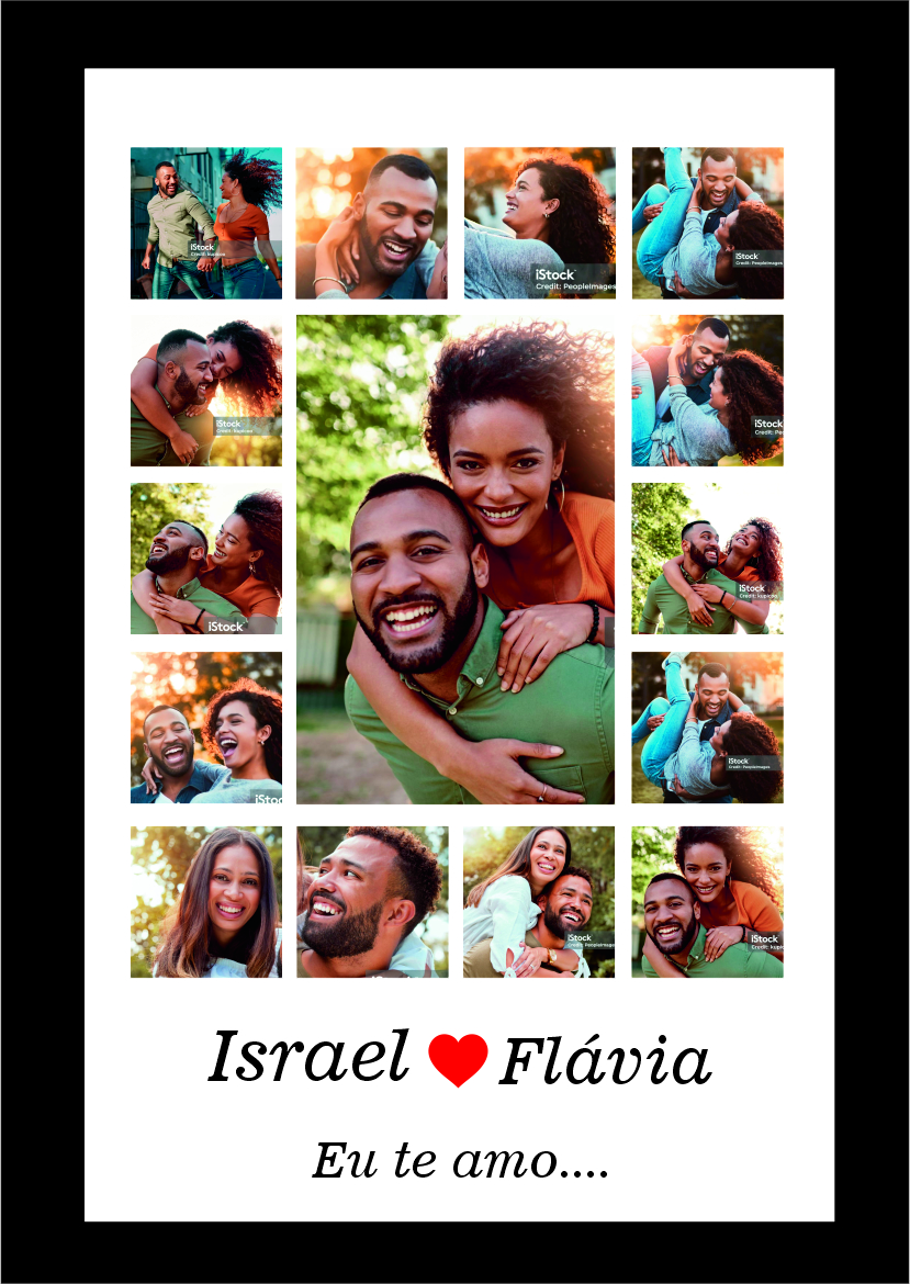 Quadro em MDF em tamanho A4 com 15 fotos do Casal.